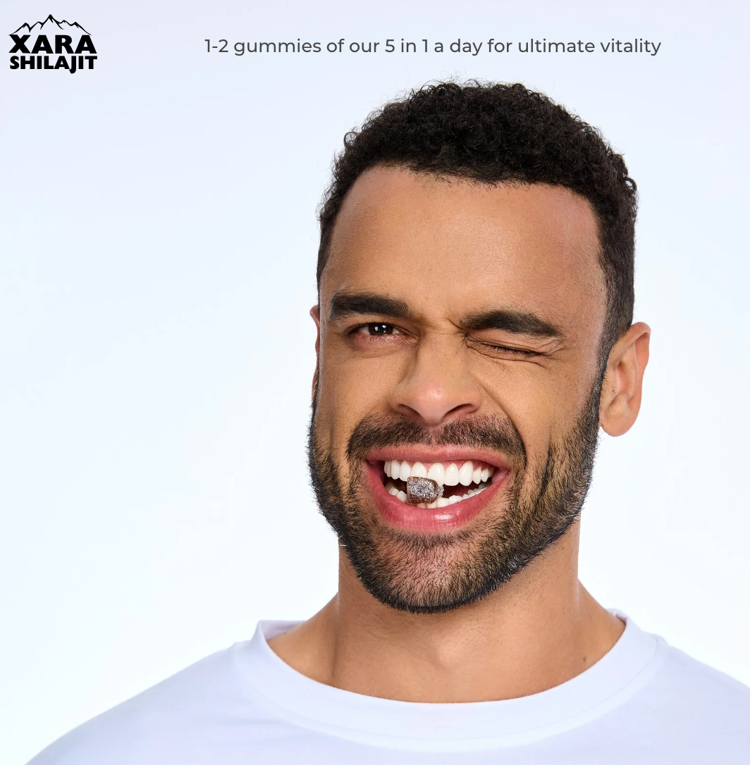 In a clinical trial of men aged 35 to 65, participants were given a daily 5-in-1 Wellness Gummy containing Shilajit, Sea Moss, Ashwagandha, Lion’s Mane, and Black Seed Oil.