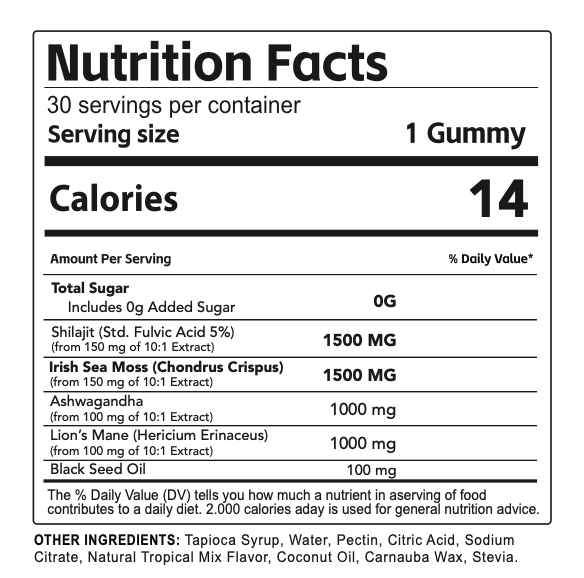 100% Pure Shilajit, Sea Moss, Ashwagandha, lion's mane & Black seed oil